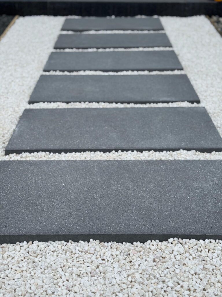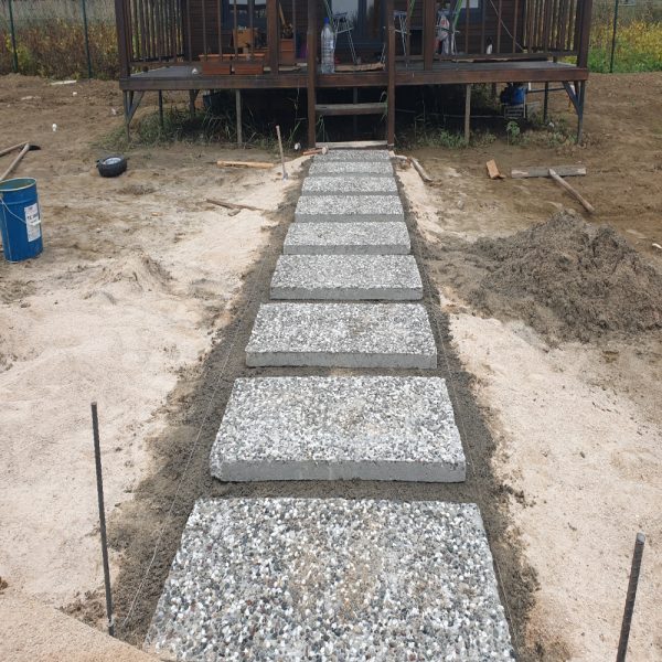 - Adım taşları aralıklı şekilde yerleştirilir