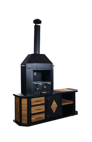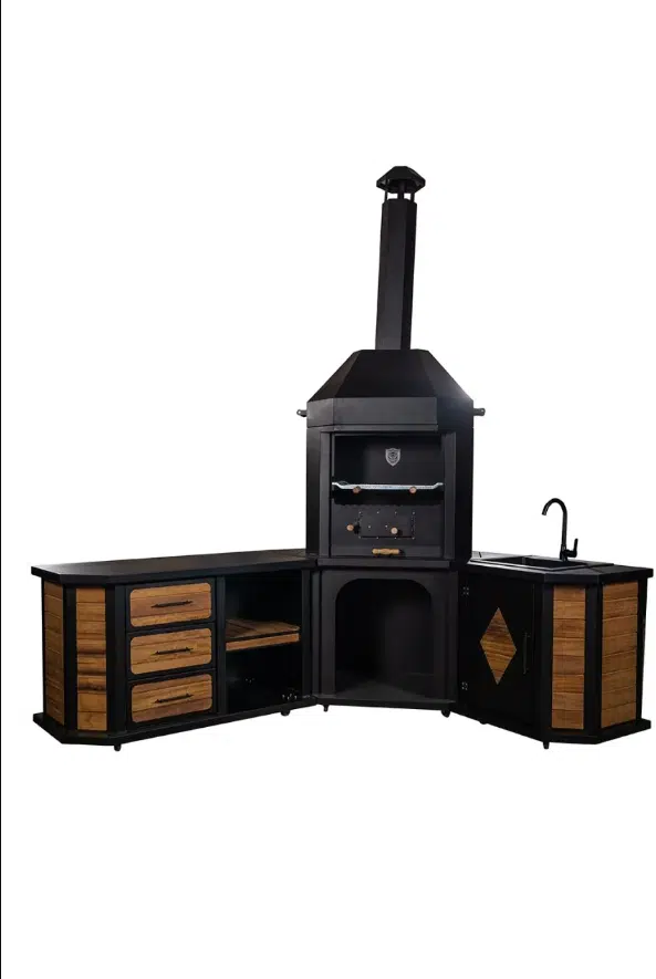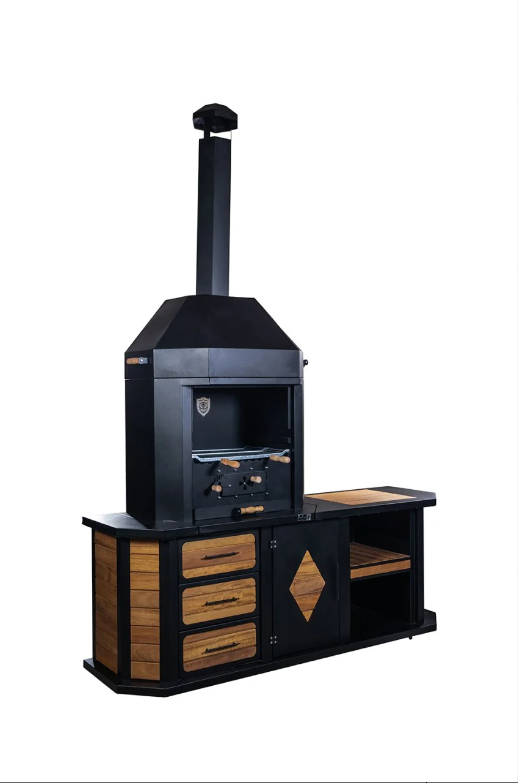Bu ünite sadece bir barbekü değil, aynı zamanda bir depolama merkezidir. 3 çekmeceli ve dolaplı tezgahı, 12 adet şiş koyma yeri ve özel odunluk bölmesiyle tüm ihtiyaçlarınız elinizin altındadır. 6 adet tekerleği sayesinde bahçenizde veya terasınızda dilediğiniz konuma kolayca taşınabilir. Opsiyonel aydınlatma, cam kapak ve farklı ızgara seçenekleriyle barbekünüzü tamamen kişiselleştirebilirsiniz.